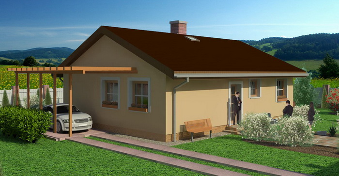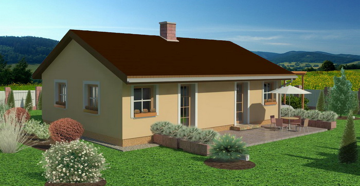 Tento dům se 4 obytnými pokoji a klasickou sedlovou střechou s možným využitím půdních prostor je zajímavý celkovou dispozicí s minimem neobytných prostor – chodeb. Oceníte šatnu spojenou s ložnicí, kterou lze v případě potřeby přidáním okna využít jako malou pracovnu. Maximální otevření prostoru je docíleno odstraněním dělící příčky z kuchyně do obývacího pokoje, na přání lze oddělit kuchyň příčkou s dveřmi. Dům je vhodný pro rodinu s dvěma dětmi. Užitná plocha 80,22 m2, zastavěná plocha 97,94m2.